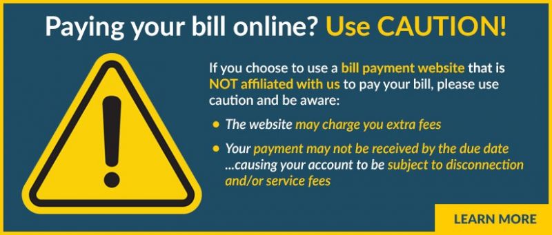 Click the green "Pay Your Bill Now" button, located above or at the bottom of this page to access the online bill payment portal. On the payment portal page, you will need to register or log in to your online portal. From their you can access your account balance and proceed with payment. Customers registering for the first time will need your account number and the zip code from your bill